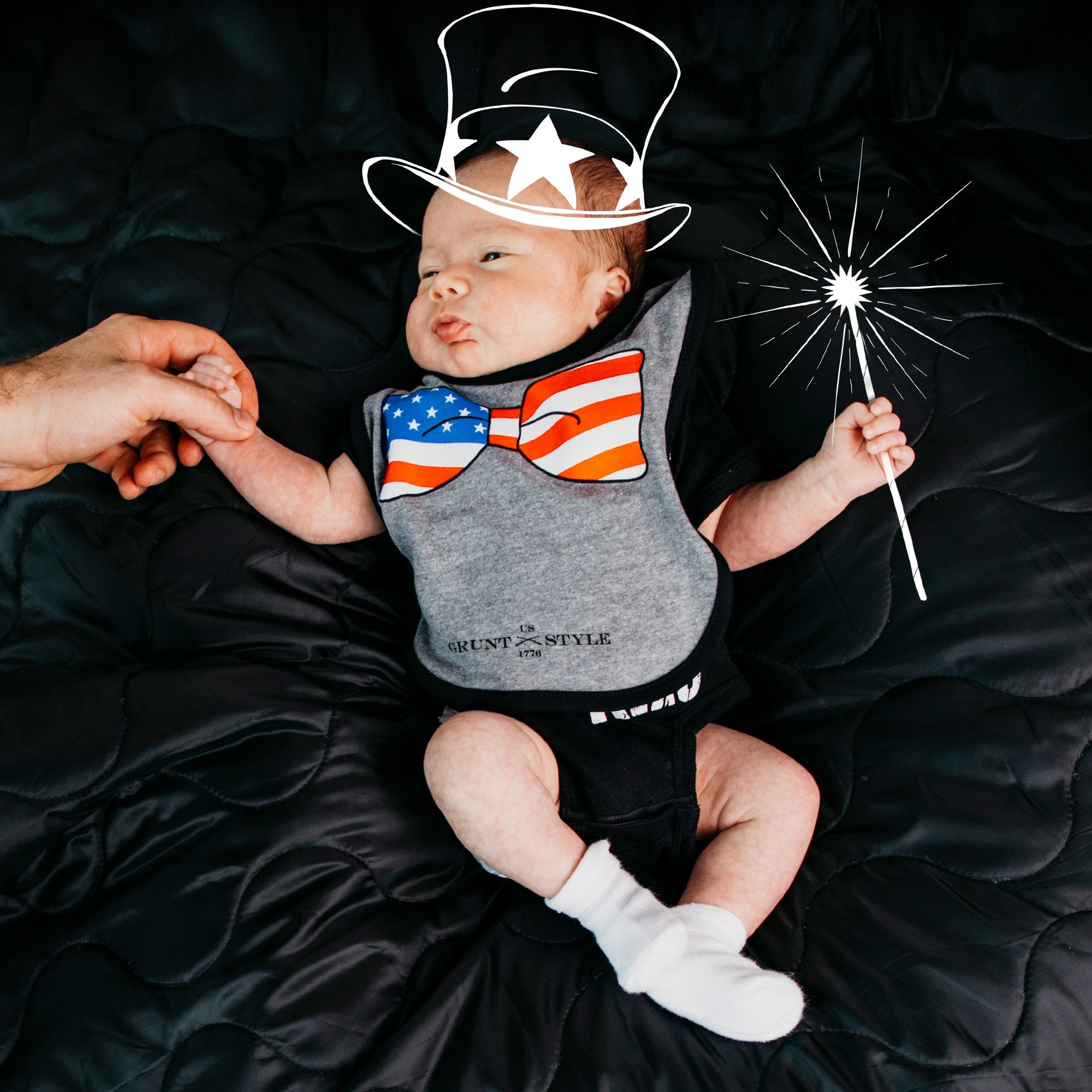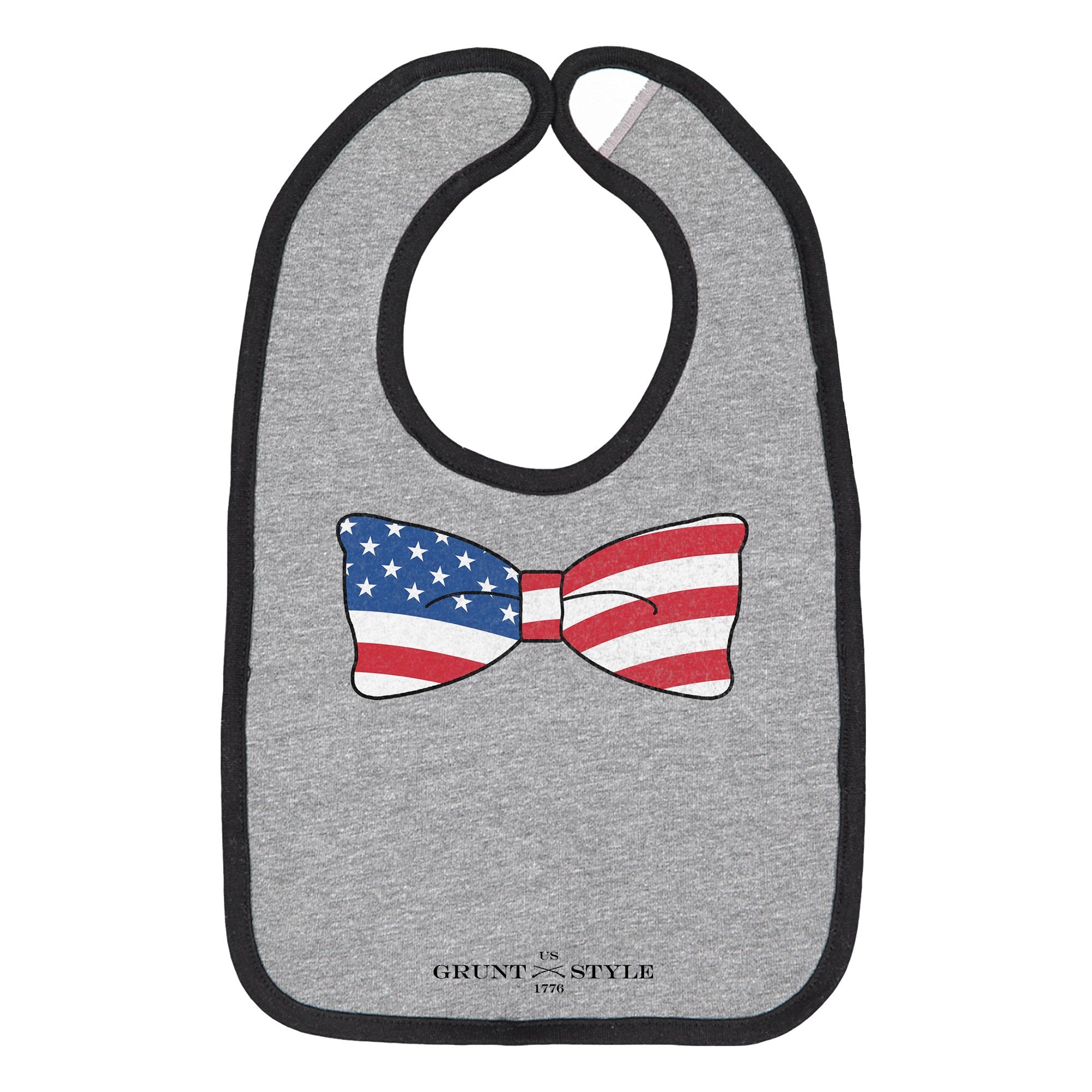 Runt Style's Flag Bowtie Bib is the perfect pairing, catch all bib for the little Patriot in your life.