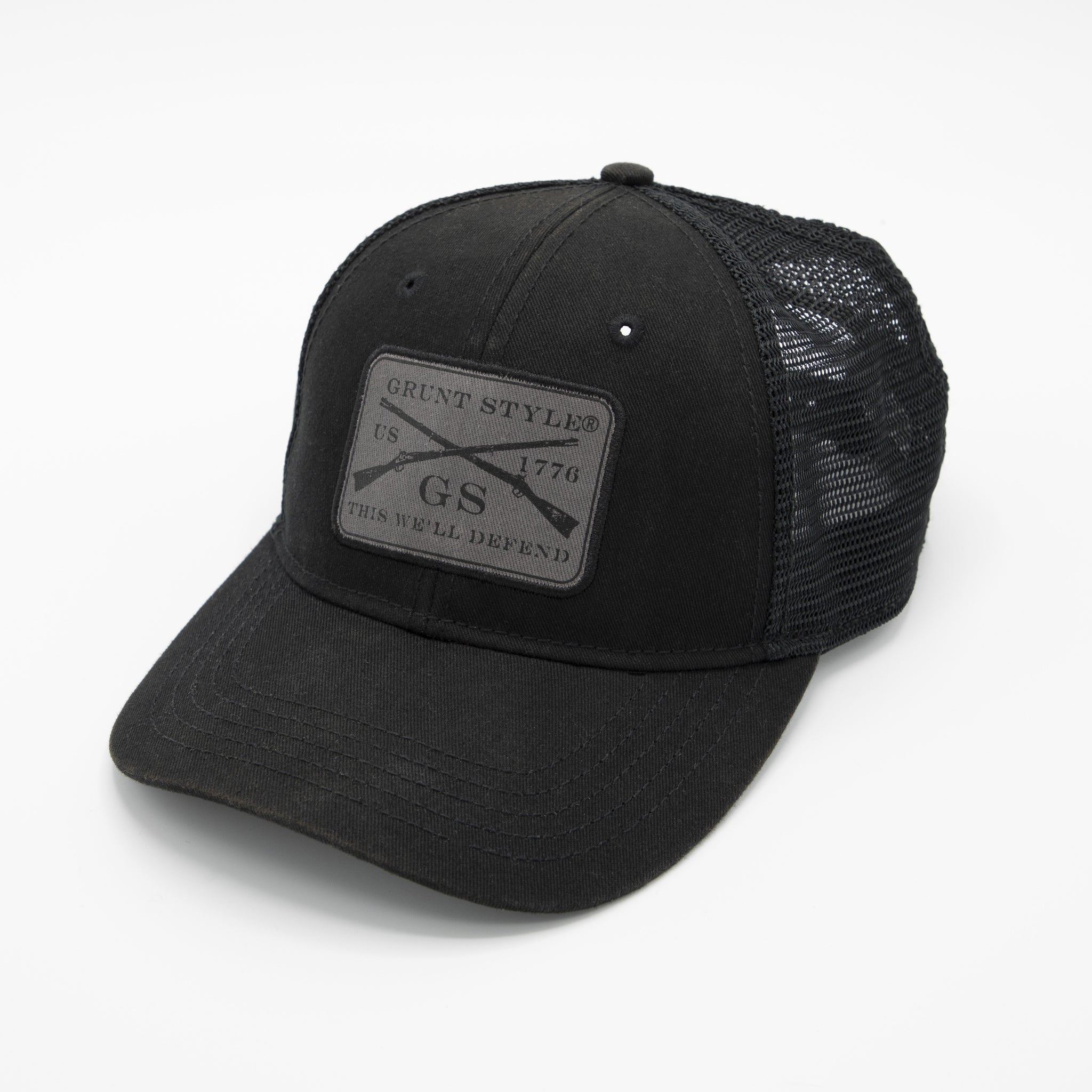 The GS Twill Logo Hat - Black is a structured 6 panel chino twill/soft mesh back Cap with a Screen Printed Twill Applique & Plastic Snapback Closure.