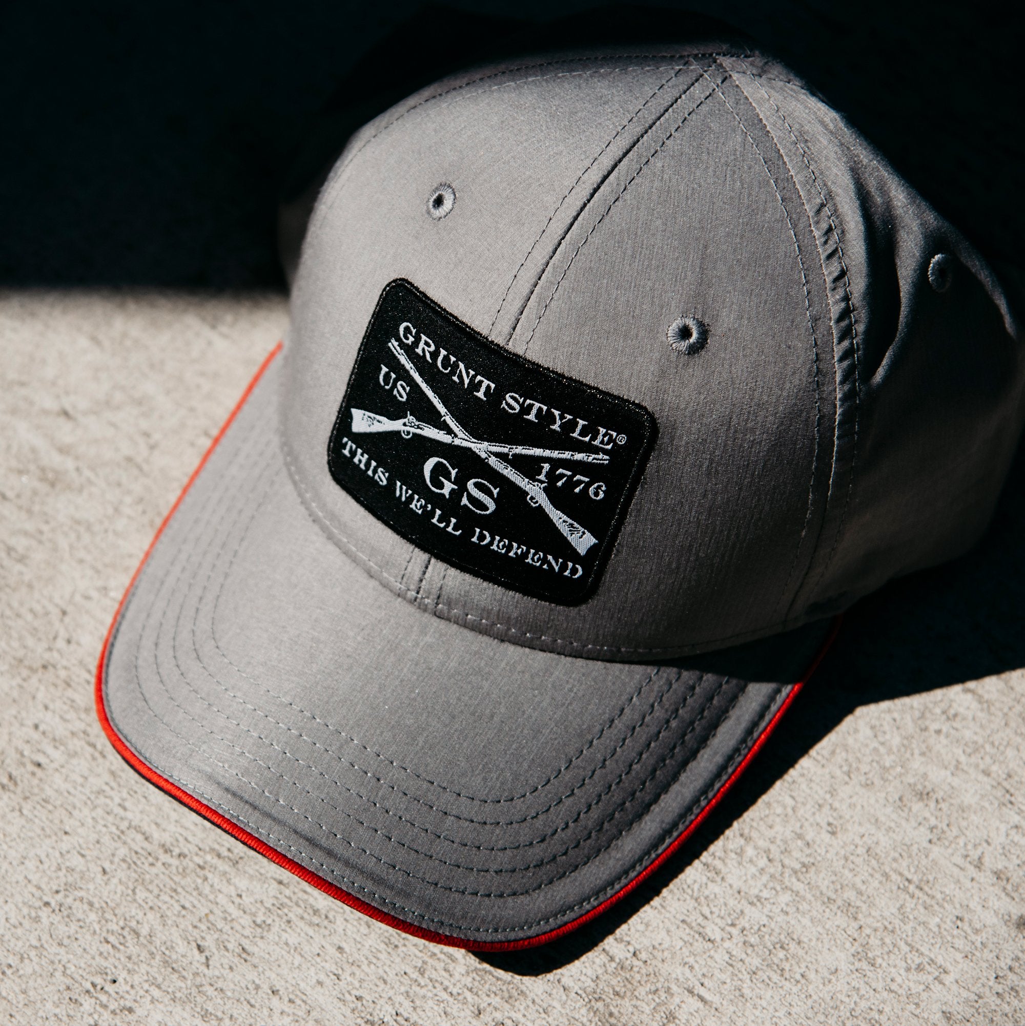 The GS Woven Patch Lightweight Hat is a structured 6 panel Heathered Suiting Lightweight Fabric Cap with a double sandwich visor and snap back enclosure. This Hat also features a Grunt Style Woven Patch on the Center Front Panel. One Size Fits Most.