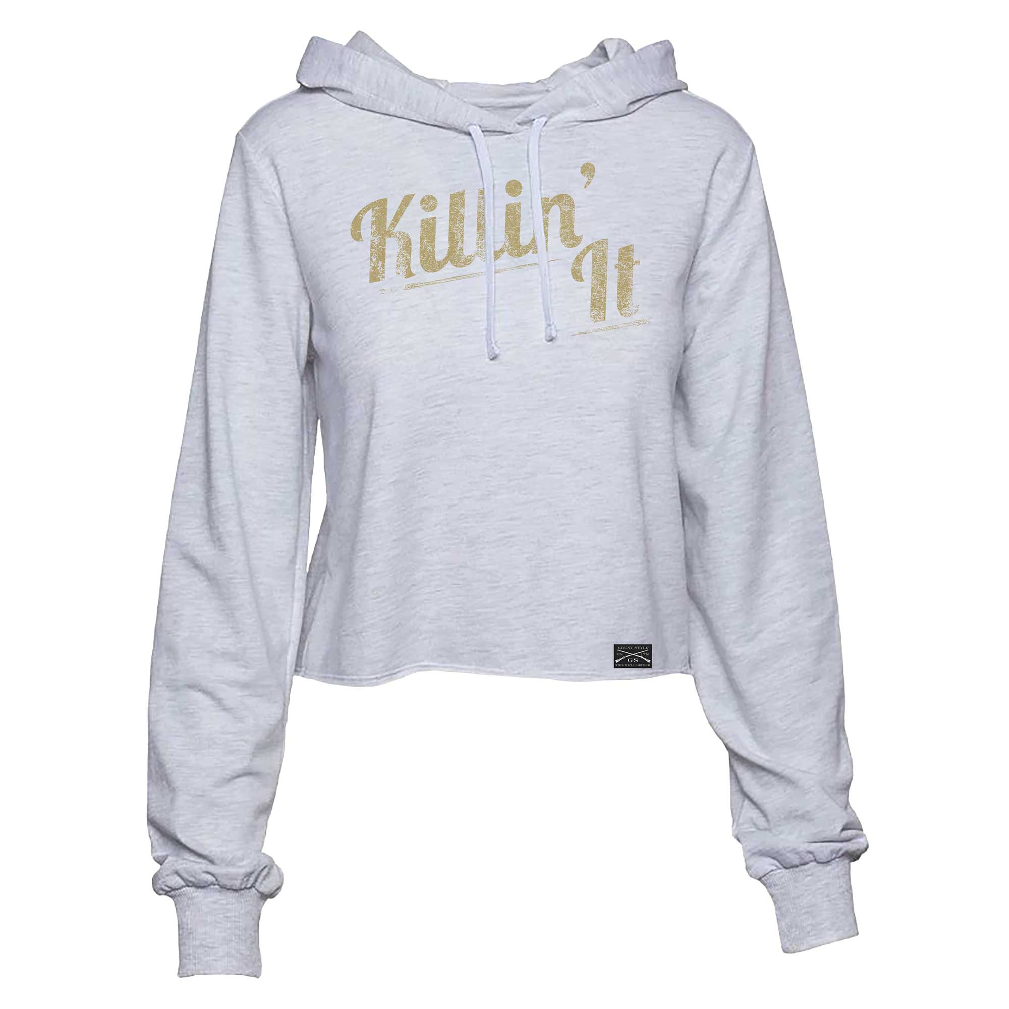 Don't apologize for who you are, you are Killin' It. This versatile super soft cropped hoodie is great for the gym and for layering.