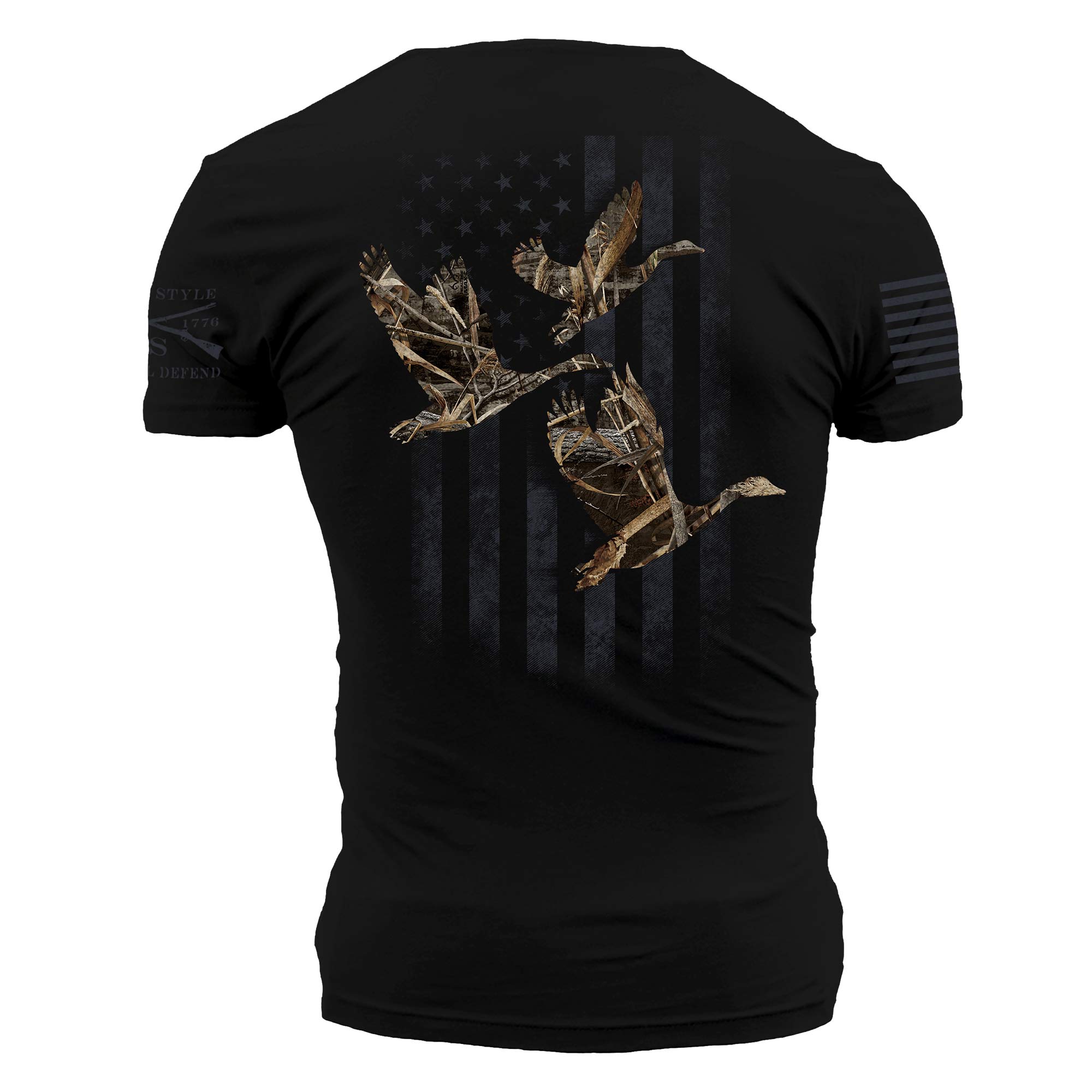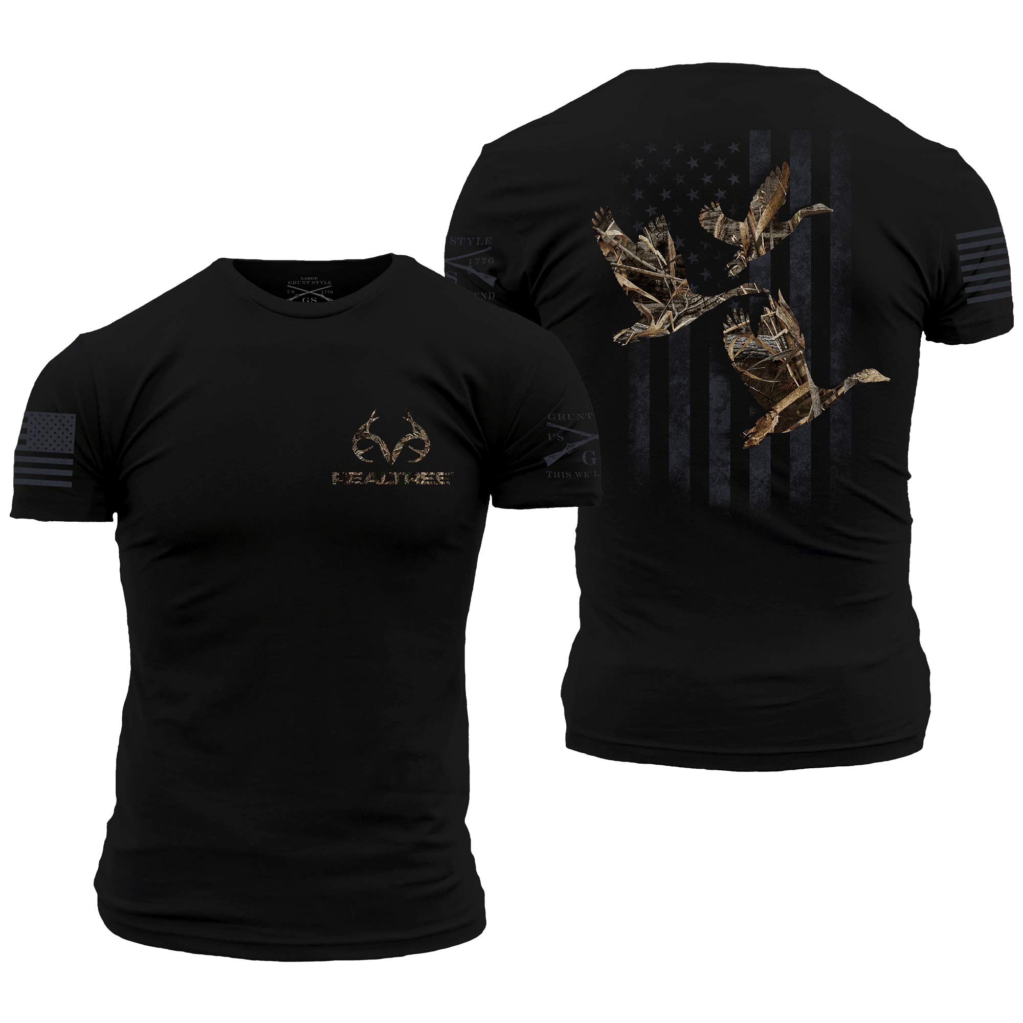We have teamed up with Realtree® to offer this killer design with a Max-5® filled logo and some of our favorite game flying on the back!