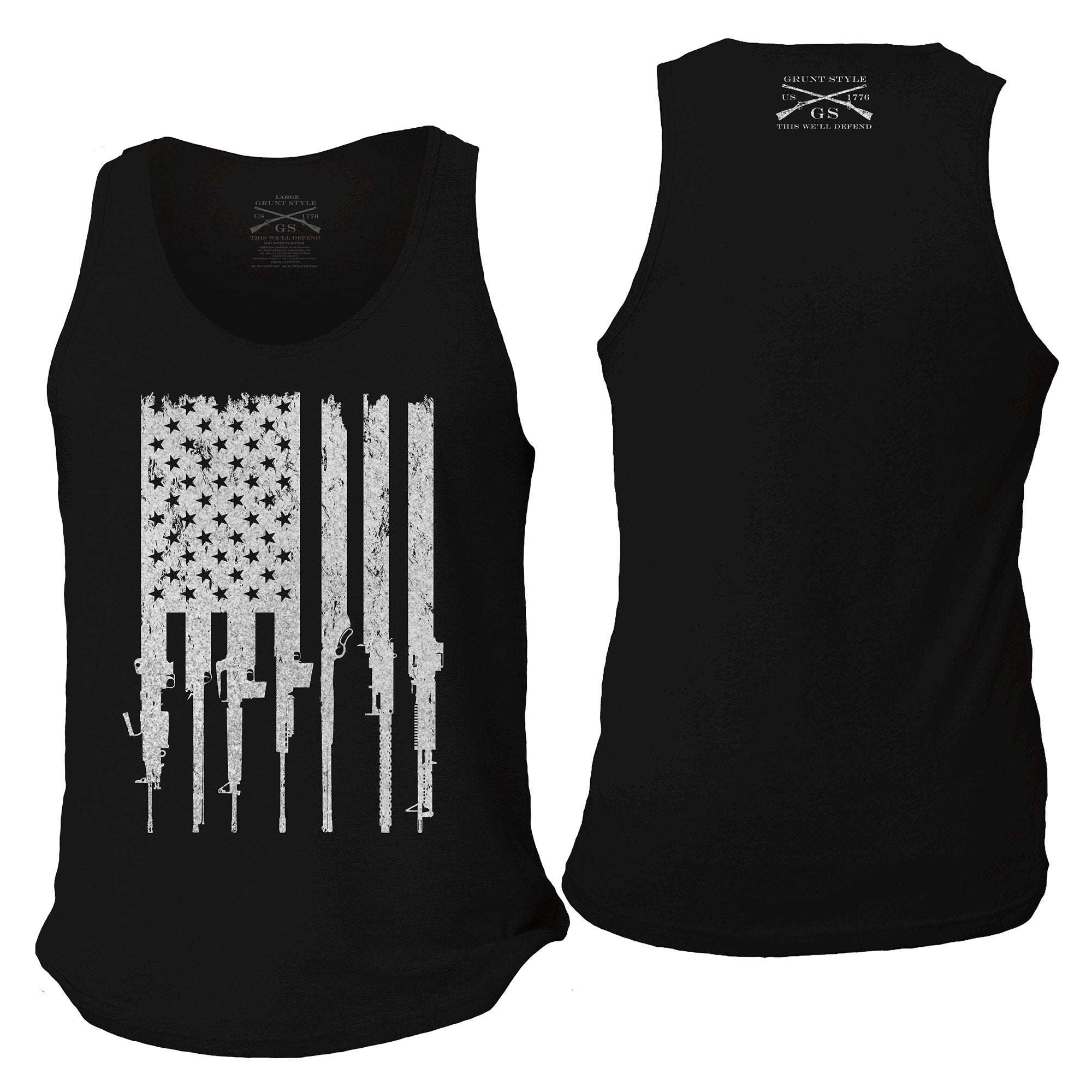Celebrate the 2nd Amendment of the United States Constitution in Grunt Style's Rifle Flag Men's Tank - Black.