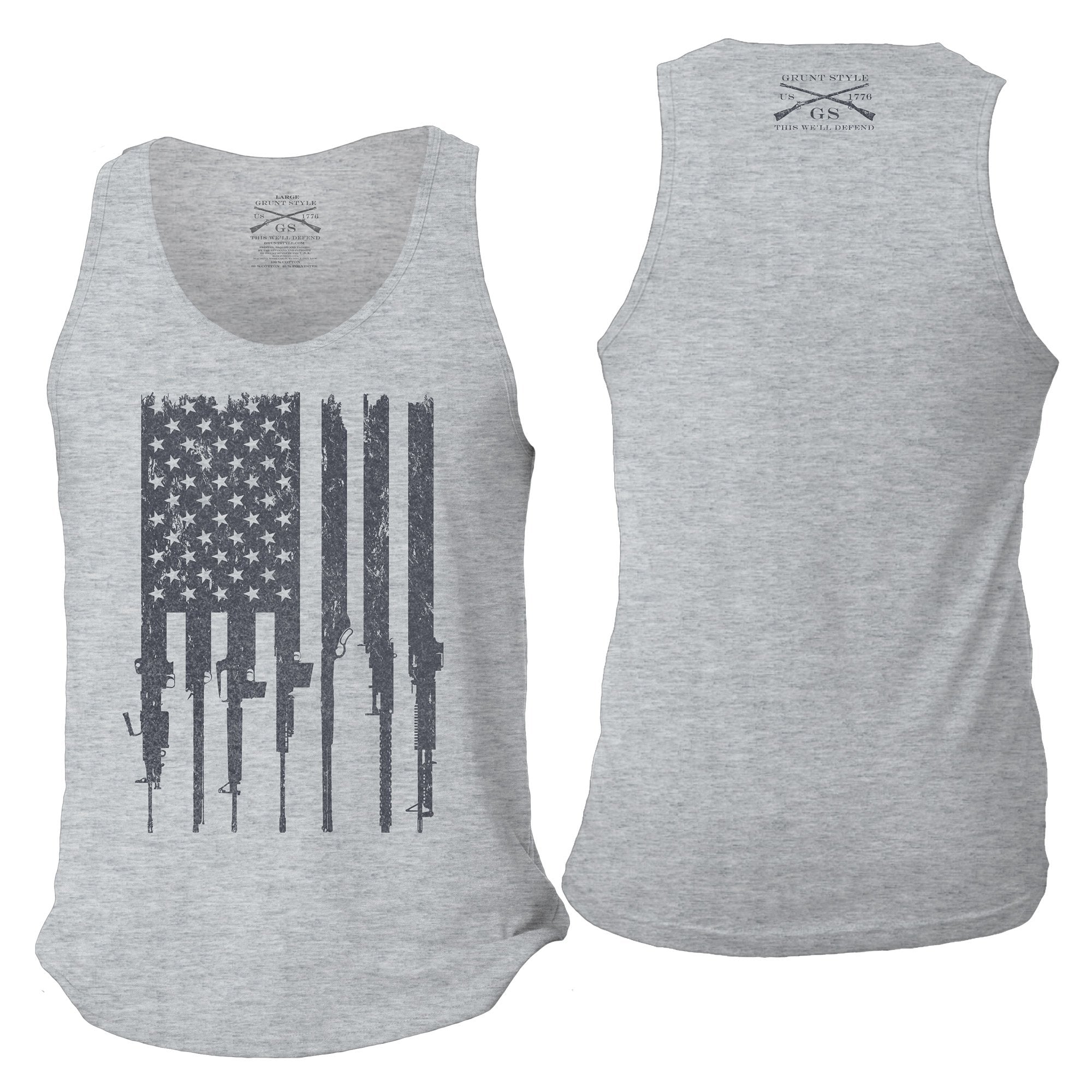 Celebrate the 2nd Amendment of the United States Constitution in Grunt Style's Rifle Flag Men's Tank - Heather Gray.