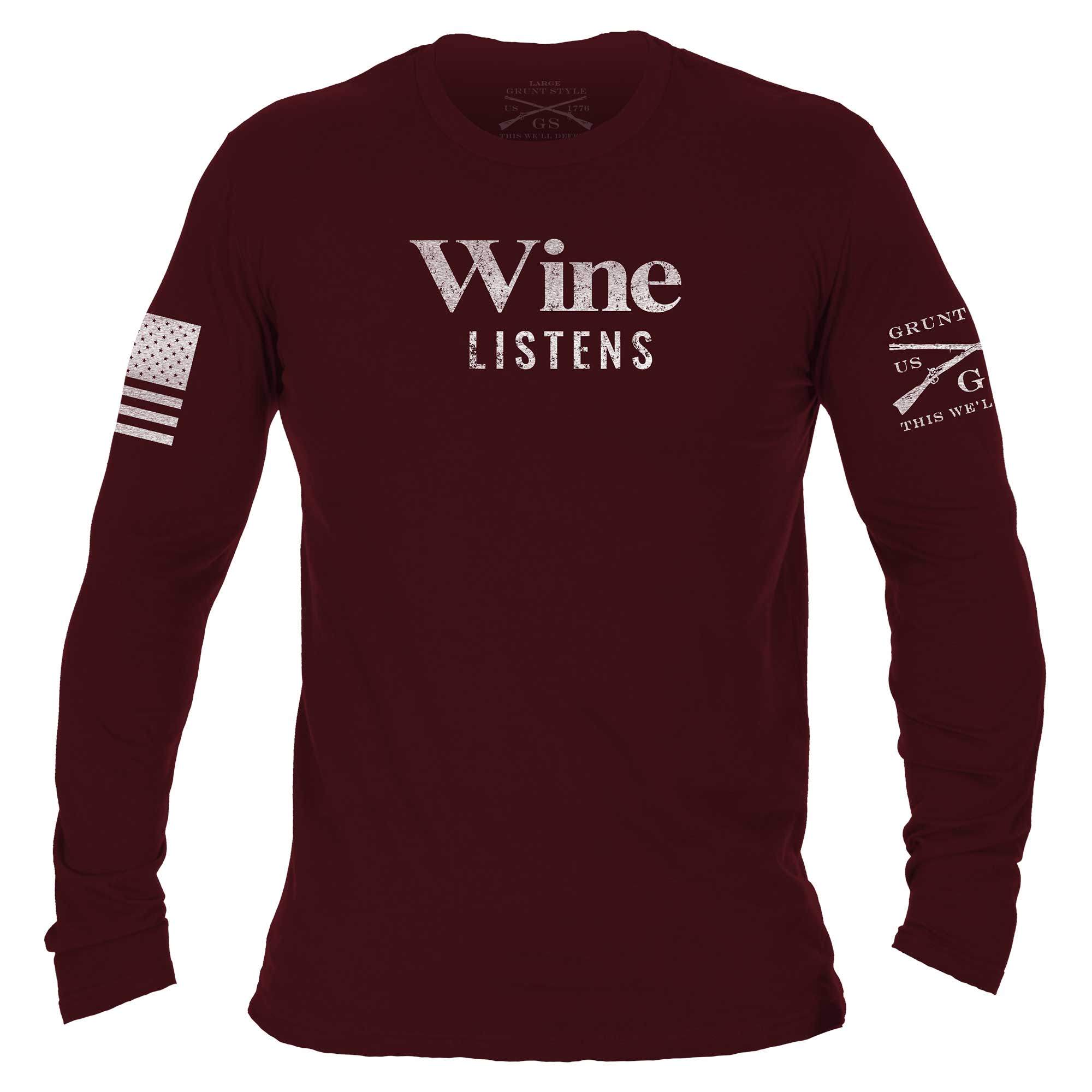 Your secrets, your fears, your anger and especially when he doesn't... Wine Listens. Now available in a Long Sleeve! Check out the Tee and Hoodie.